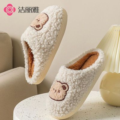 洁丽雅毛绒棉拖鞋女士秋冬季防滑家居室内新款包头小熊情侣棉拖鞋13.9元天猫19.9元
