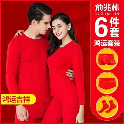 本命年秋衣秋裤男士套装纯棉大红色情侣结婚保暖内衣女套装109元淘宝209元