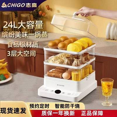 志高电蒸锅24L大容量家用三层多功能电蒸笼小型可视透明蒸锅119元淘宝219元