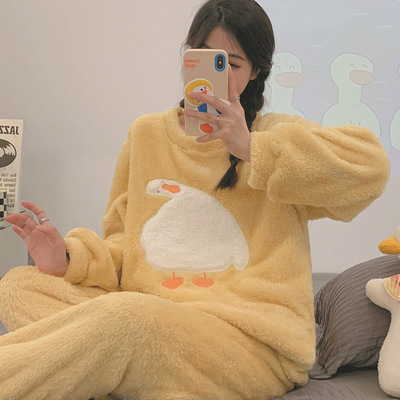 2025法兰绒睡衣女秋冬长袖网红时尚卡通珊瑚绒条纹可爱家居服套装39.9元淘宝69.9元