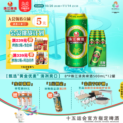 8度清爽珠江啤酒500mL*12罐整箱38元天猫43元