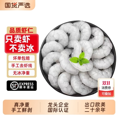 环球特大号青虾仁手工去虾线新鲜速冻单冻生虾仁去冰净重2斤虾饺79元天猫92元