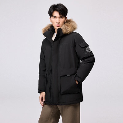 雅鹿大毛领羽绒服男款加厚2025冬季新款户外极寒工装派克保暖外套479元天猫499元