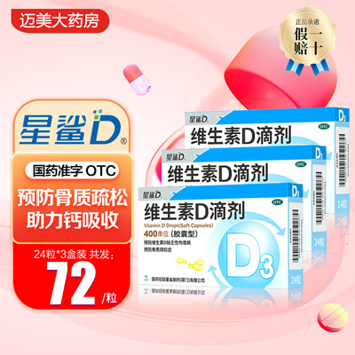 【星鲨】维生素D滴剂(胶囊型)400IU*24粒/盒59.9元天猫79.9元