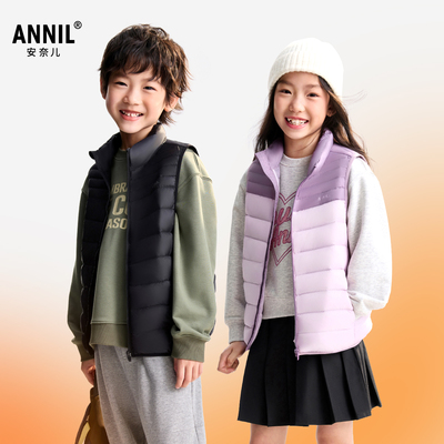 【三防蓄热】安奈儿童装男女童短款羽绒马甲2025冬保暖亲子内搭119元天猫129元