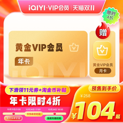 【秒杀直播间专享】爱奇艺黄金vip会员年卡12个月爱奇艺 天地剑心104元天猫105元