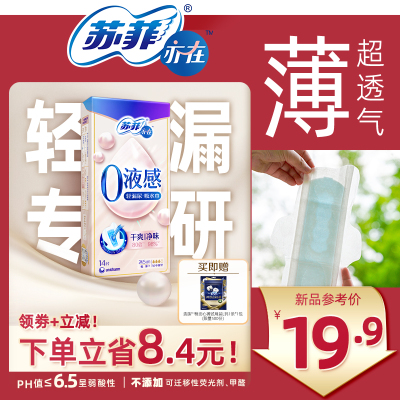苏菲亦在0液感吸水巾漏尿专用护垫卫生巾孕妇成人干爽轻薄净味9.3元天猫14.3元
