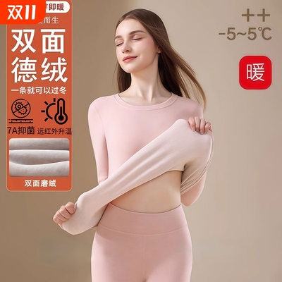 德绒发热秋衣秋裤套装女士秋冬季加绒加厚磨绒内搭打底衫羊绒羊毛15.23元天猫24.23元