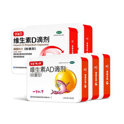 【自营】【娃の福】维生素AD滴剂500IU1500IU*48粒/盒【3盒装】夜盲症佝偻病夜盲186元天猫216元