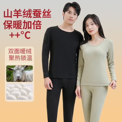 秋冬情侣男女士羊绒蚕丝保暖套装双面磨毛秋衣秋裤内衣59元淘宝159元