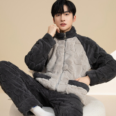 情侣睡衣男士秋冬季新款立领拉链加厚长袖珊瑚绒家居服套装119元淘宝219元