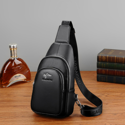 正品袋鼠男士胸包真皮时尚休闲95元淘宝145元