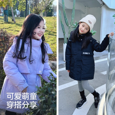 森马儿童羽绒服2024新款三防外套中长款冬装时尚印花连帽女童上衣434元天猫494元