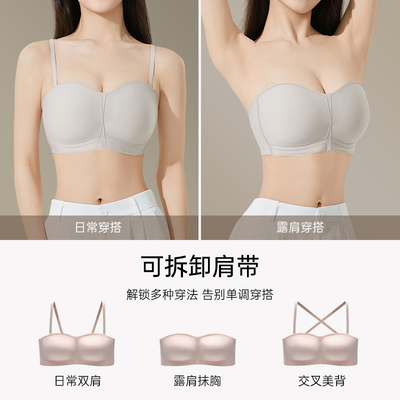 无痕粉底液隐形不透内衣女吊带美背大胸显小收腹乳夏季薄款文胸罩19.2元天猫70.2元