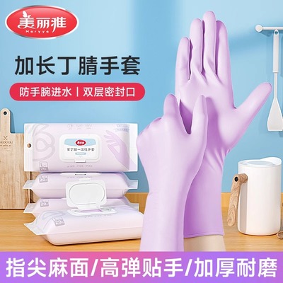 美丽雅丁腈手套家务洗碗厨房耐用一次性紫色洗衣清洁防水抽取式9.5元天猫12.5元