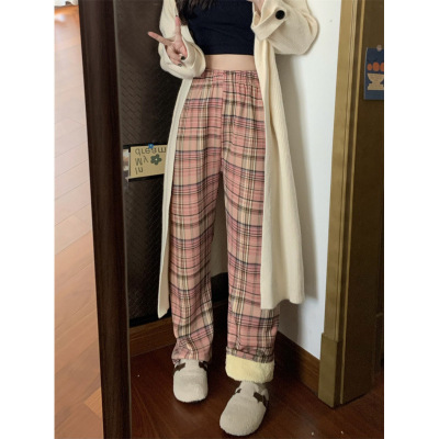 羊羔绒加绒格子裤女小个子阔腿裤秋冬新款高腰直筒裤女垂坠感裤子29.9元淘宝79.9元