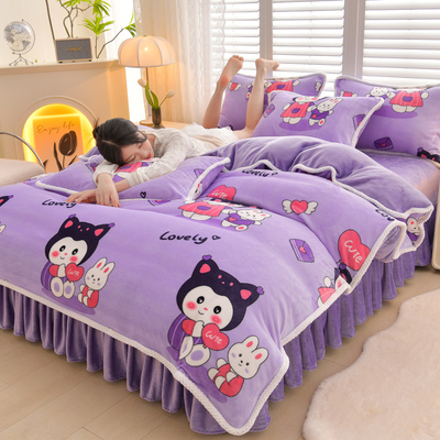 2025款加厚保暖牛奶绒四件套三件套床裙款冬季加绒床上用品学生99.9元淘宝299.9元