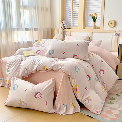 2025款加厚保暖牛奶绒四件套三件套床裙款冬季加绒床上用品学生99.9元淘宝299.9元