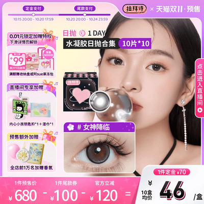 抢前48h付定】拉拜诗美瞳水凝胶日抛合集10盒*10花色任选直播535元天猫680元