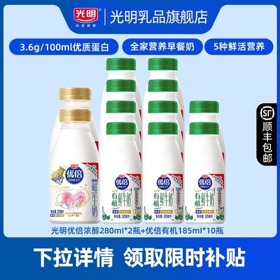 【淘秒】光明优倍浓醇280ml*2瓶+优倍有机185ml*10瓶 小瓶便携装36.1元天猫46.1元