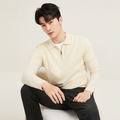 【含羊毛/POLO衫拉链针织】柒牌套头薄翻领毛衫人字纹翻领polo衫243.5元天猫253.5元