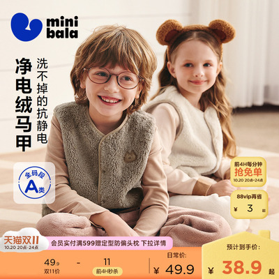 【抗静电】迷你巴拉儿童保暖马甲男女童宝宝秋冬双面珊瑚绒背心39.9元天猫49.9元