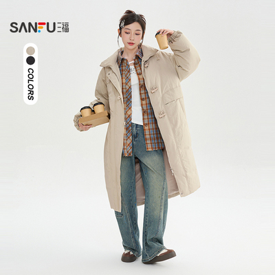 艾莱依女士防风牛角扣羽绒服冬季