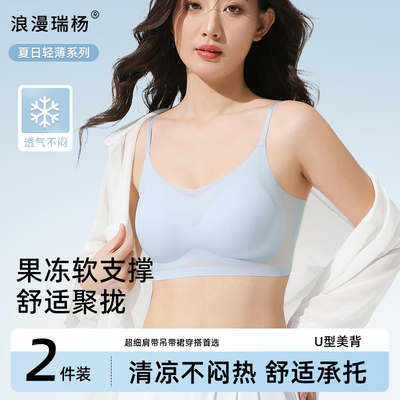 粉底液隐形无痕内衣女小胸聚拢夏季薄款凉感冰丝美背细肩带文胸罩12.9元天猫29.9元