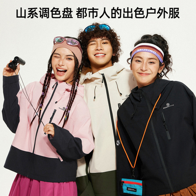 Jeep吉普多巴胺冲锋衣情侣款春秋2025新款宽松户外登山服夹克外套