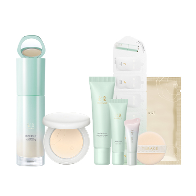 [双11直播抢购]彩棠TIMAGE蜜粉饼+小圆管粉底液 遮瑕持久定妆套装347元天猫397元
