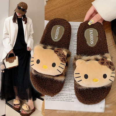 豹纹卡通可爱家居室内少女心可爱拖鞋一字懒人一脚蹬羊羔毛毛毛鞋26.9元天猫46.9元