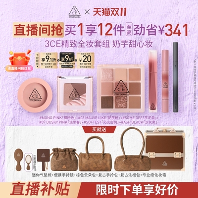 【双11狂欢】3CE彩妆全套套装眼影腮红唇釉口红眼线笔 N614元天猫800元