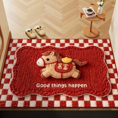 2026马年新年卡通喜庆地垫进门入户玄关浴室水晶绒脚垫地毯门垫6.9元淘宝16.9元