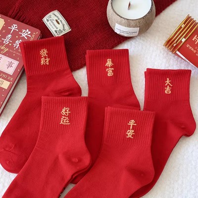 新年袜子红袜子马年本命年中筒秋冬红色喜庆过年男女卡通同款情侣15.9元天猫24.9元