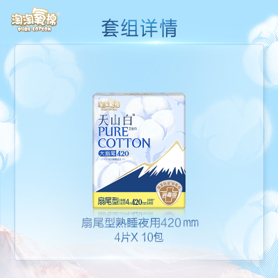 【国标消毒级】淘淘氧棉天山白小扇尾消毒级纯棉卫生巾420mm40片51.9元天猫75.9元