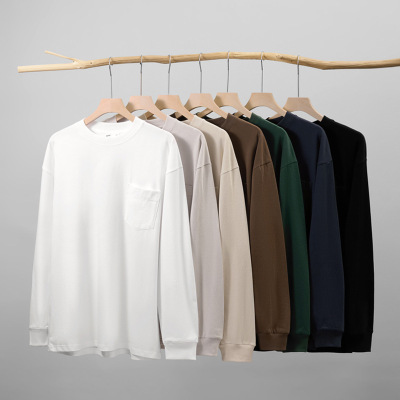 oversize纯棉口袋款长袖t恤男秋季休闲圆领打底衫女纯色内搭上衣24.9元天猫29.9元
