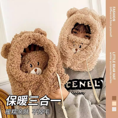 小熊可爱口罩帽子围巾冬季一体防风冬天保暖骑车护耳围脖秋冬时12.1元天猫15.1元