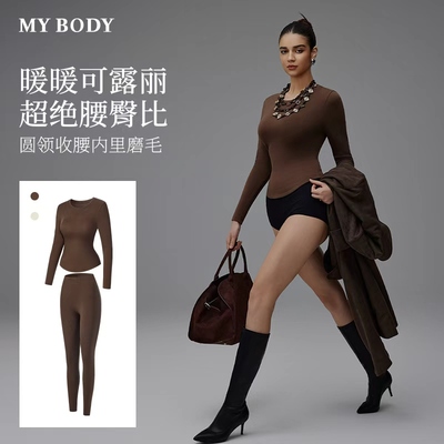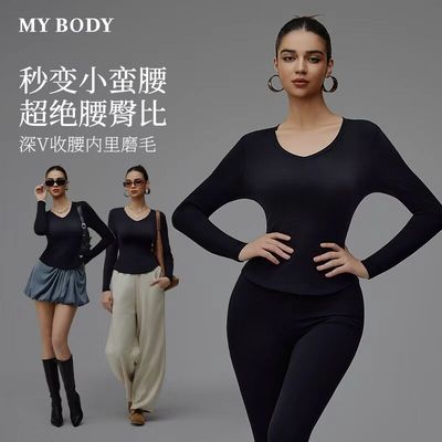 MYBODY商场同款秋新款秋衣秋裤简约V领磨毛内里薄绒女士保暖内衣65.8元天猫145.8元