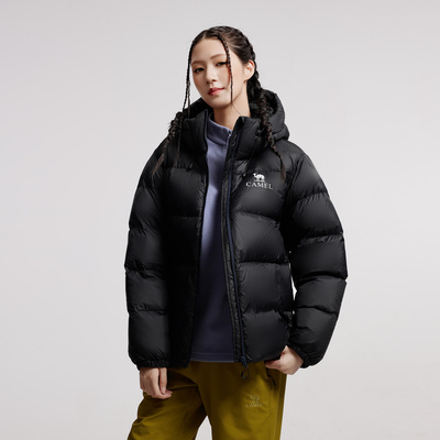 骆驼泡芙羽绒服女白色冬季鸭绒防风连帽外套保暖小个子短款面包服