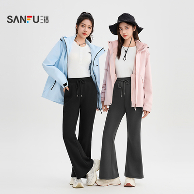 三福休闲裤2025新款冬季保暖加绒喇叭裤时尚修身显瘦针织裤子女装92元天猫95元