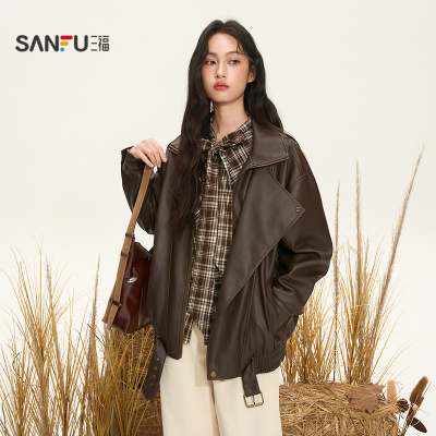 三福外套冬季2025新款今年流行爆款大翻领宽松皮衣夹克女装509093260.1元天猫275.1元