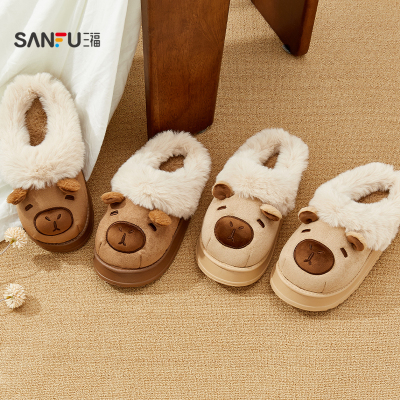 三福棉拖鞋卡皮巴拉室内家居保暖毛绒外穿包跟拖鞋冬季2025新款25.6元天猫29.6元