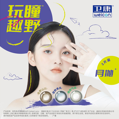 卫康玩瞳月抛美瞳彩色隐形近视眼镜2片自然大小直径舒适旗舰店44.7元天猫92.7元
