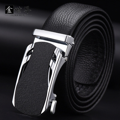 男士高级感荔枝纹头层牛皮合金自动扣皮带高端商务真皮腰带