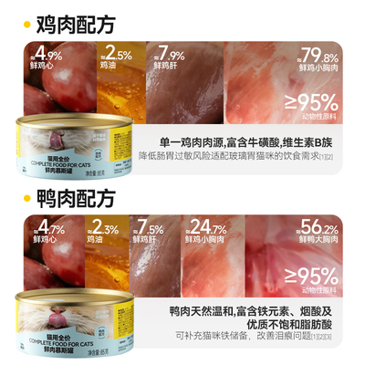 【重磅新品】金故主食罐头全价鲜肉慕斯罐猫咪宠物湿粮补水鸭肉味22.8元天猫25.8元